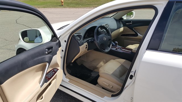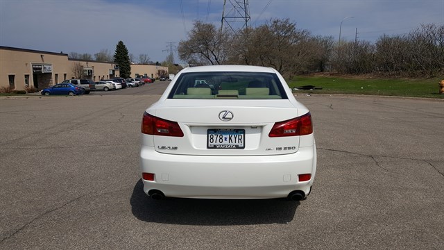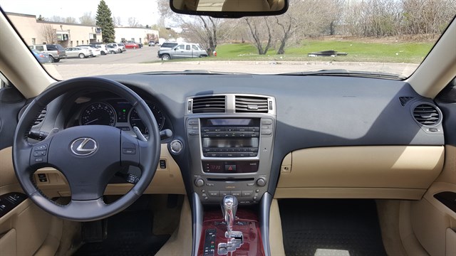 2006 Lexus IS 250. AWD. 99,513 miles. Clean title. 1 owner accident free carfax. Very well maintained with 60 service records. Maintenance up to date. New battery. Tires are at 7 tread. Non smoker. 2 keys. Remote start. HID headlights. 17" alloy wheels. Heated and cooled leather seats. Moonroof. In-dash 6 disc CD player. AUX. Premium sound system. Push button start. Paddle shifters. Genuine wood trim. HomeLink. Brake assist. Stability control. 22/28 MPG. Very reliable, safe and holds value.