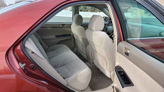 2005 Toyota Camry LE. 4 cylinder. FWD. 143,106 miles. Clean title. 2 owner accident free carfax with 14 service history records. Very well maintained. Maintenance up to date. New front and rear brake pads. New sway bar links. Newer battery. Valve cover gaskets and front crankshaft oil seal replaced at 131k. Goodyear tires, tread at 9. Non smoker. Rust free. Moonroof. CD player. Premium sound system. 24/34 MPG. Brake assist. Stability control. Great condition. Very reliable, safe and holds value.
