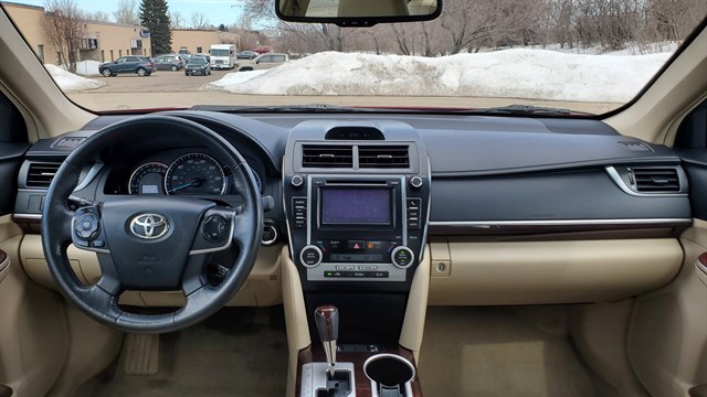 2012 Toyota Camry XLE. FWD. 3.5L V6. 93,915 miles. Very clean and well maintained, serviced at Toyota dealer every minor and major maintenance interval. Non smoker. Newer brakes. Newer Michelin tires on 17 inch alloy wheels. Tech package. Premium package. Cold weather package. HID headlights. Fog lights. Moonroof. Dual exhaust. Touch screen Navigation. Back up camera. Push button start. Wood grain style trim. HomeLink. Heated leather seats. Premium sound. Very efficient 21/30 MPG. 2 owner prior salvage title, professionally repaired and inspected by the state of MN. Damage to rear end, airbags did not deploy. Pictures available upon request. Safe, reliable and holds value.