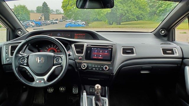 2015 Honda Civic Si Coupe. 6-speed manual. FWD. 2.4L i-VTEC. 119,227 miles. Well maintained. Non smoker. Continental tires on 18" alloy wheels, tire tread at 8. Good brakes. HID headlights. Fog lights. Moonroof. Rear spoiler. Tow hitch. 7" touch screen with back up camera. Heated leather seats. Push button start. Premium audio with bluetooth. Efficient 22/31 MPG. 2 owner prior salvage title, professionally repaired and inspected by the state of MN. Damage to passenger side door and quarter panel. Pictures available upon request. Safe, reliable and holds value.