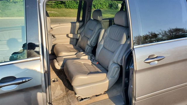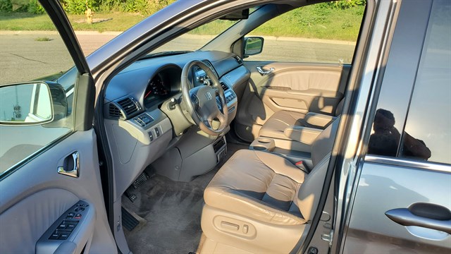 2010 Honda Odyssey EX-L. FWD. 3.5L V6. 114,866 miles. Clean title and accident free. Clean and very well maintained. Non smoker. Good brakes. Timing belt and water pump, stabilizer bar and sway bar bushings, valve cover gaskets, and spark plugs all replaced at 106k. Alternator and battery replaced at 94k. 16 inch alloy wheels. HID headlights. Roof rack. Moonroof. Power liftgate. Dual power sliding rear doors. Leather heated seats. Rear window sunshades. Rear entertainment TV/CD/DVD player. Rear climate control. 3rd row seating. Premium sound system. HomeLink. Brake assist. Stability control. 18/25 MPG. Safe, reliable and holds value.