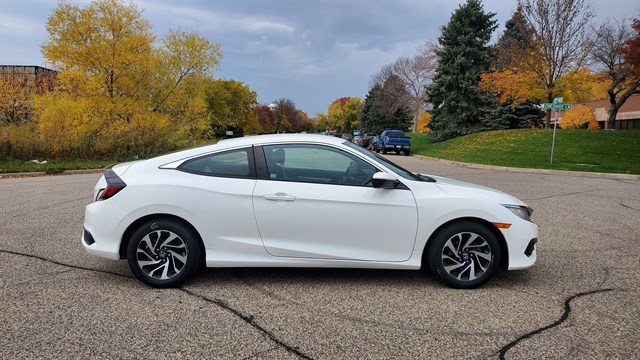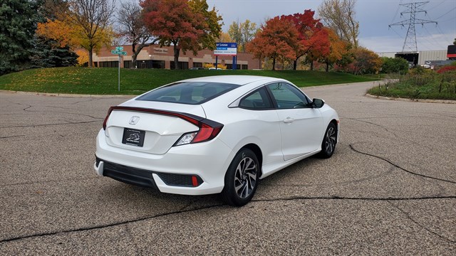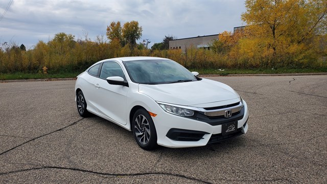 2016 Honda Civic LX Coupe. FWD. 2.0L I4. Low 33,969 miles. Clean and well maintained. Non smoker. Good brakes and tires. 16 inch alloy wheels. HID headlights. LED daytime running lights. Taillights with integrated LED light bars. 5 inch color LCD screen. Multi-angle rearview camera with guidelines. Electric parking brake with automatic brake hold. Hill start assist. Premium audio with bluetooth. Power everything. Very efficient 30/41 MPG. Prior salvage title, professionally repaired and inspected by the state of MN. Damage to drivers side quarter panel. Pictures available upon request. Safe, reliable and holds value.