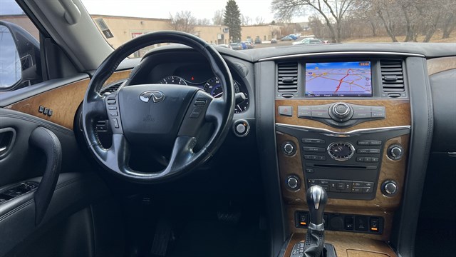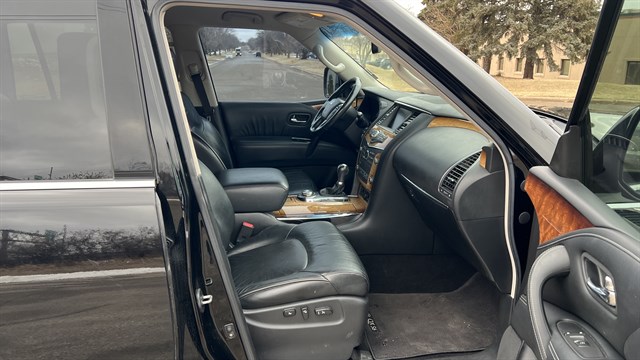 2012 Infiniti QX56 AWD with 124,200 miles. Local trade-in very well taken care of. clean inside and outside. fully loaded. Navigation, 360 cameras, rear entertainment system. heated leather seats and steering wheel. newer tires. Recently been serviced. Needs nothing. Clean title with Total loss history on carfax due to minor accident.